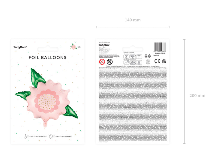 Foil balloon Flower, mix of colours, size before inflation approx. 70 x 57 cm (27.5 x 24"), size after inflation approx. 56 x 47 cm (23 x 19"). Inflate with air and helium. Set contains a straw.