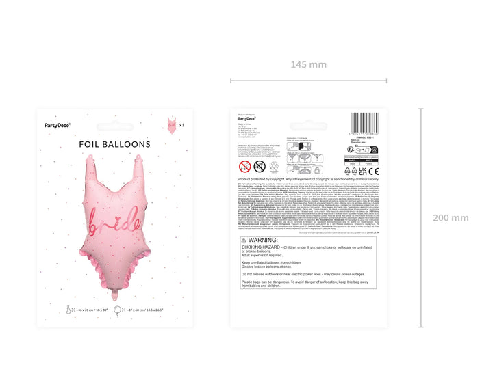 Matt foil balloon Swimsuit, mix of colours, size before inflation approx. 46 x 76 cm (18 x 30''), size after inflation approx. 37 x 68 cm (14.5 x 26.5''). Inflate with air and helium. Set contains a straw.