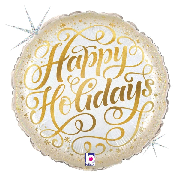 Glistening Happy Holidays 26316 - 18 in Betallic Glitter Holographic Round Shape Foil Balloon